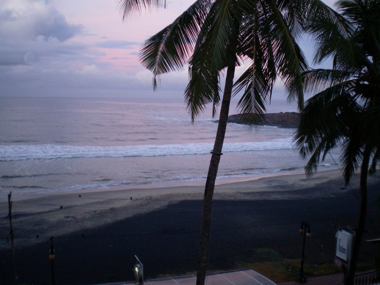 this pic taken from the hotel balcony @ Kovalam beach. It’s off season time and the sea is a bit rough and the sand has turned its color from white to black. Still, it’s a place to spend a night, having good food and chilled beer.